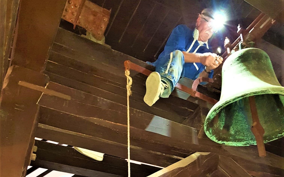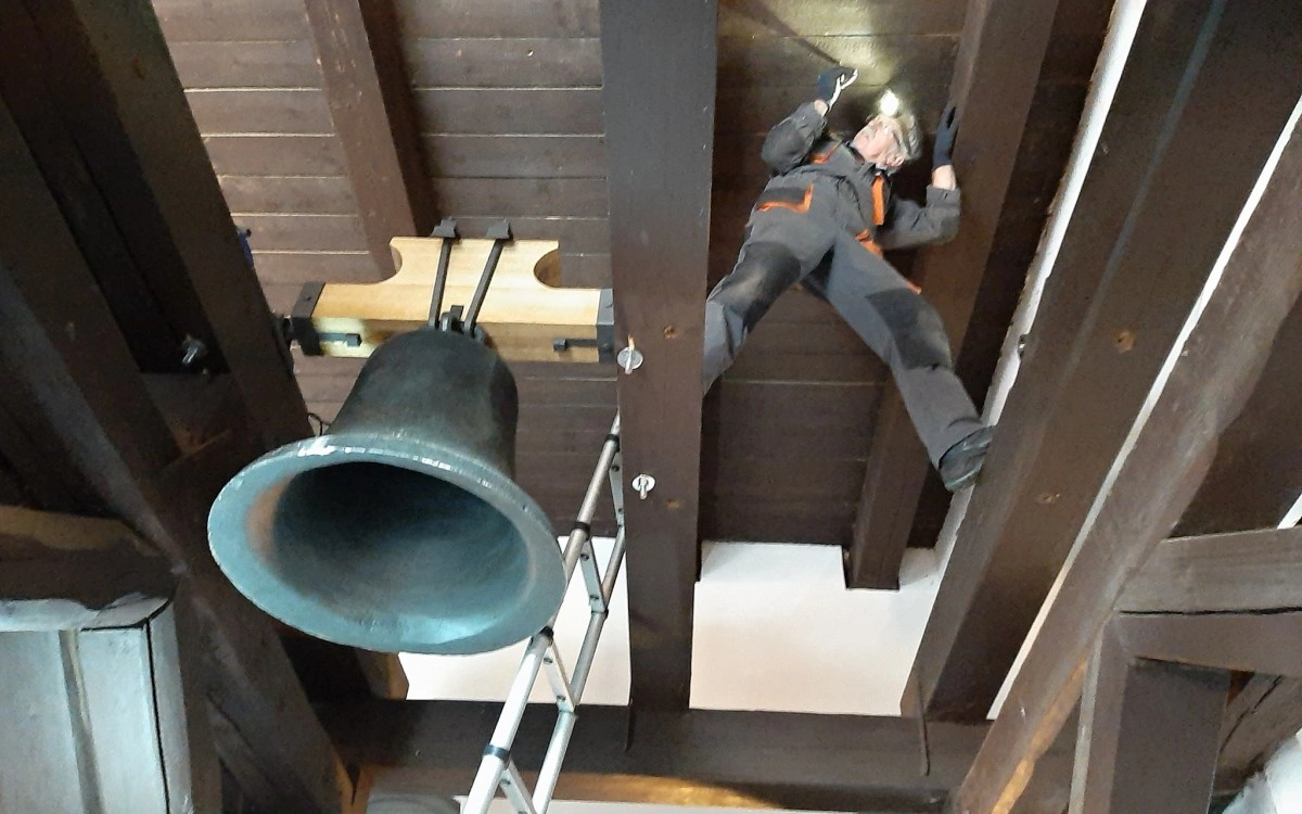 Celou neděli zvonařský mistr instaloval zvony a ladil je tak, aby se úderem 18. hodiny rozezněly v celé své kráse. Foto: město Jirkov