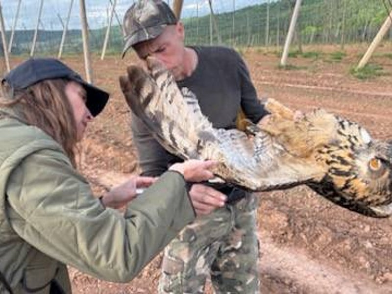 Žatec – V sobotu vyjeli pracovníci Záchranné stanice Falco na chmelnici kousek od Žatce, aby pomohli zachránit výra velkého.