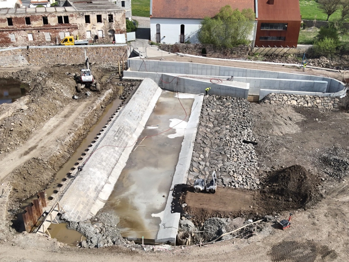 „Aktuálně probíhá druhá fáze, během které jsme demontovali mostní provizorium a nyní přímo v korytě toku přesouváme materiál. Pracujeme na násypu pro novou jímku, osazujeme kameny do rybího přechodu a betonujeme nové schodiště," informuje mluvčí povodí Ohře Dana Zikešová.