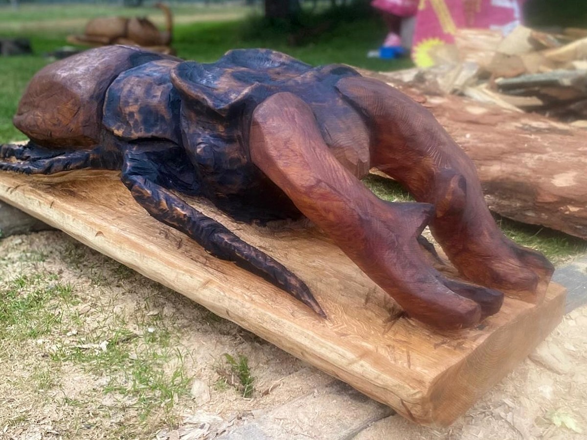 Během týdne, kdy sympozium probíhalo, mohli lidé sledovat, jak krok za krokem jednotlivá díla vznikají – od ničím se neodlišujícího se kmene dubu, až po finální moření či barvení vyřezaného brouka.
