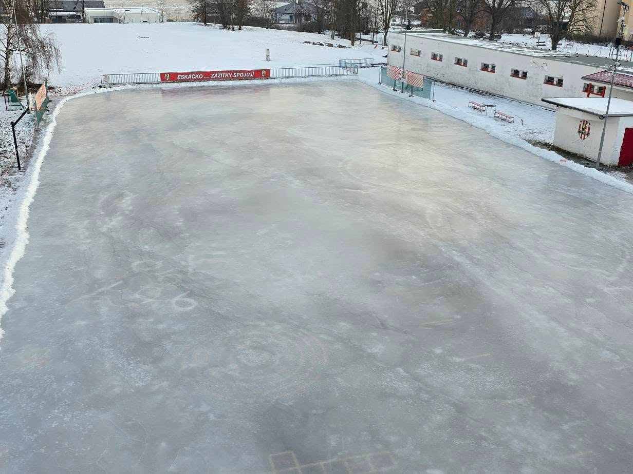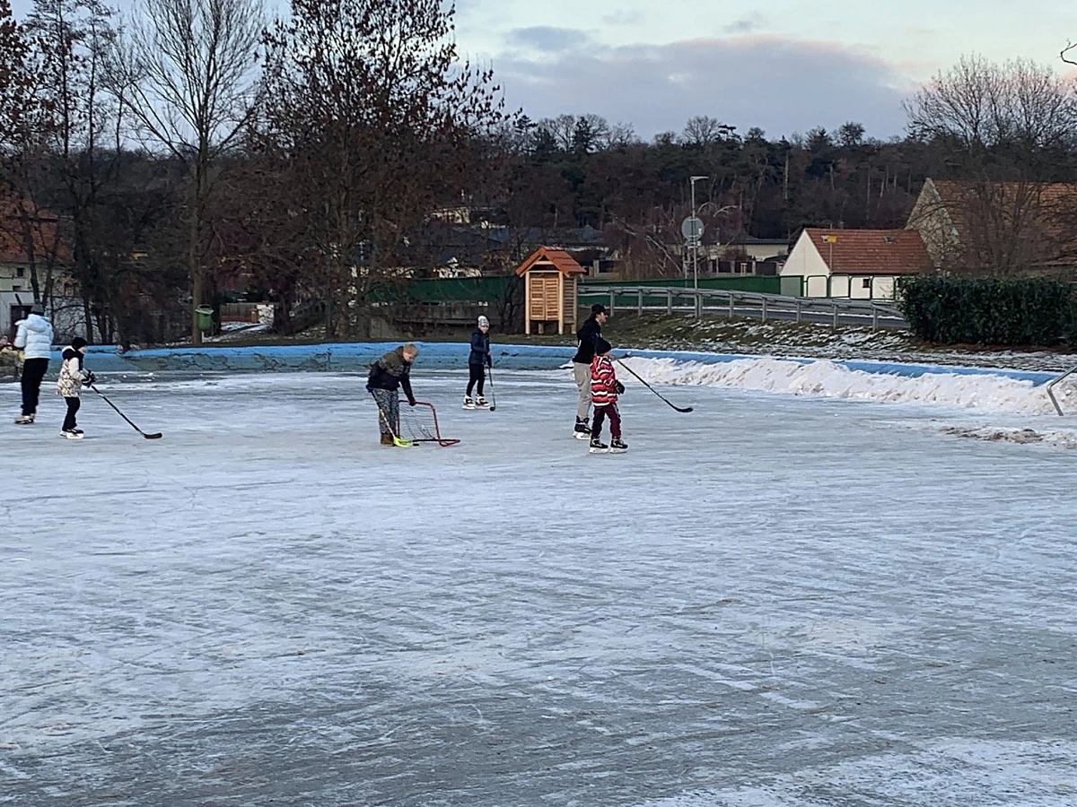 Pak už stačí pár nadšenců z řad tatínků, kteří popadli hrablo a nadšenci, hlavně z řad dětí, mohou bruslit a stát se místní hokejovou či krasobruslařskou hvězdou.