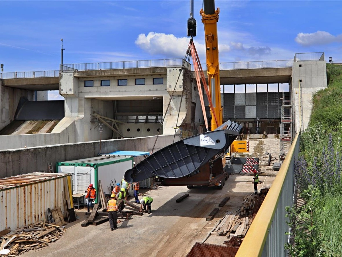 Modernizace krajních polí přelivu byla inženýrskou výzvou. Každá z instalovaných klapek je široká 15 metrů a váží úctyhodných 70 tun.